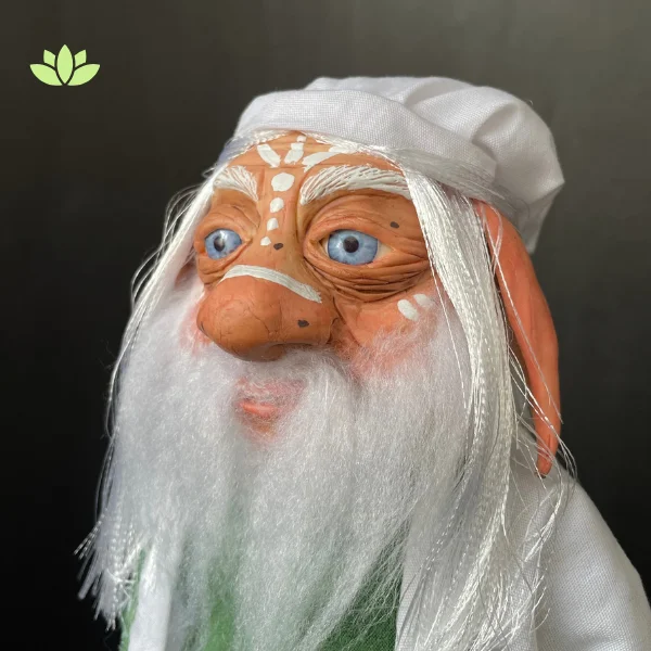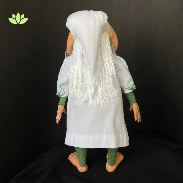 Este duende está hecho a mano con materiales reciclados y sostenibles, garantizando un diseño único y respetuoso con el medioambiente. Sus detalles destacan su conexión con la naturaleza y la espiritualidad.