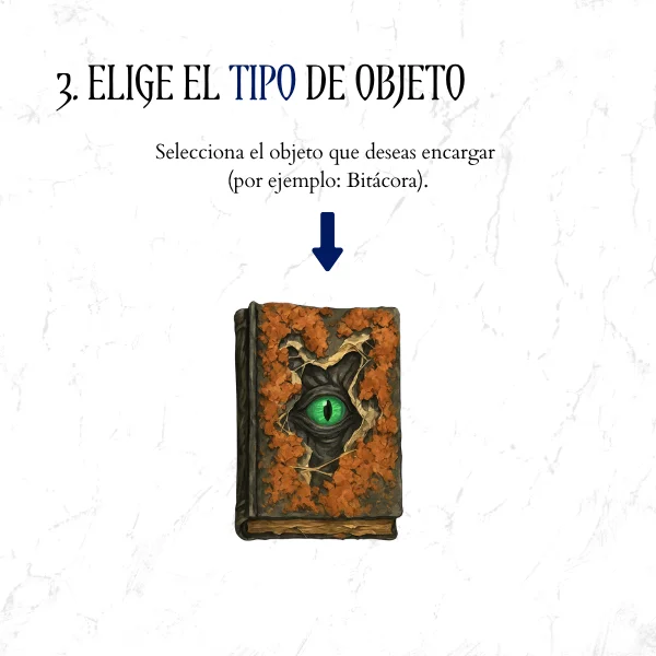 Selecciona el objeto que deseas encargar. Por ejemplo: Bitácora.
